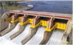 Cada tramo tiene una compuerta radial tipo segmento de 13 m de luz y 8 m de altura, comandadas a distancia desde la Central en Caverna, o en forma local desde una caseta ubicada en el muro lateral.
