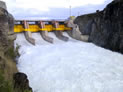 La cota de coronamiento es 880 msm y el caudal máximo de evacuación en cota inicial (876msm) es de 3285 m3/s.