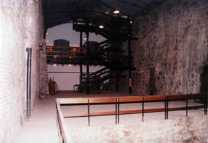 Desde un balcón es posible apreciar el salón en toda su magnitud, haciendo olvidar que tras uno de sus muros corre el canal de carga de la central.